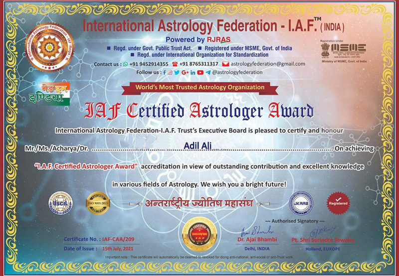 The well-known and Moulana Adil Ali works to increase public understanding of and use of astrology. Astrology is a fantastic answer for those unexpected life situations where we do need some assistance. Moulana Adil Ali entered this industry with the intention of helping others, and he has since resolved several issues. People's life have been shaped by astrology, who has inspired them to use it for good. It is the method by which it becomes simple to get things done and overcome obstacles. Astrological forecasts and cures are always worthwhile using. .