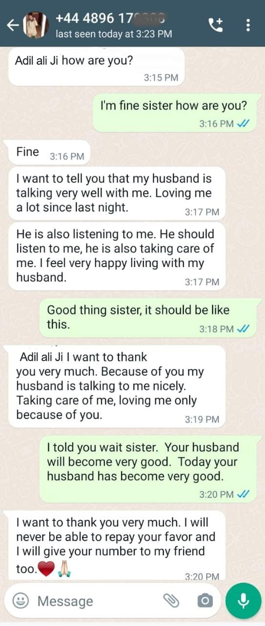 Astrologer Moulana Adil Ali plays a very important role to bring happiness in my family back. He removes the that create stress and everything is good now.